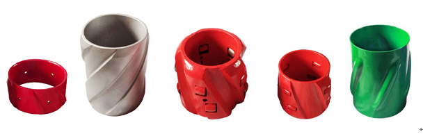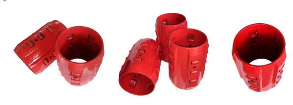 Bow elastic casing centralizers, by circular hoop, bow spring, pin components. Centralizer each specification by the corresponding bowsprings slices. Bow spring sheet material is 65mn, after forming the heat treatment, are up to standards.